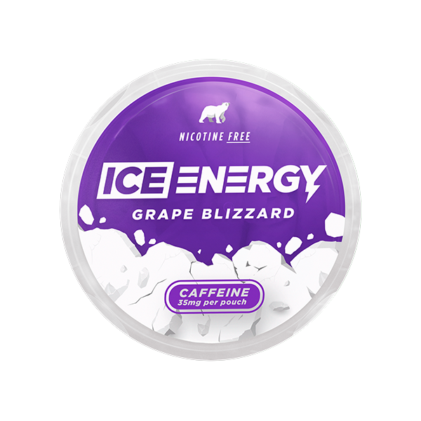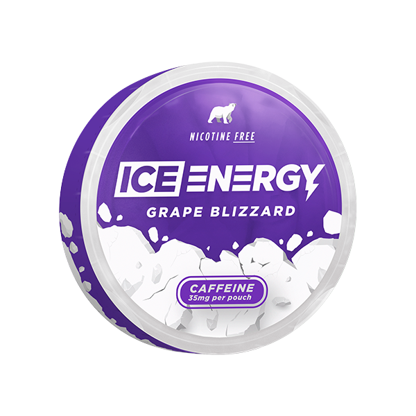 ICE Caffeine Pouch Grape Blizzard 35mg combines grape and mint flavor in a slim, discreet pouch format. Each pouch contains 35mg of caffeine and is free from tobacco and nicotine. A can includes 20 pouches, providing a lighter energy boost option.